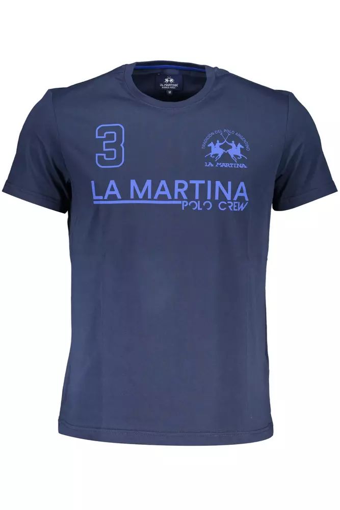 La Martina Elegant Blue Cotton Tee with Signature Print$79.00 $109.00