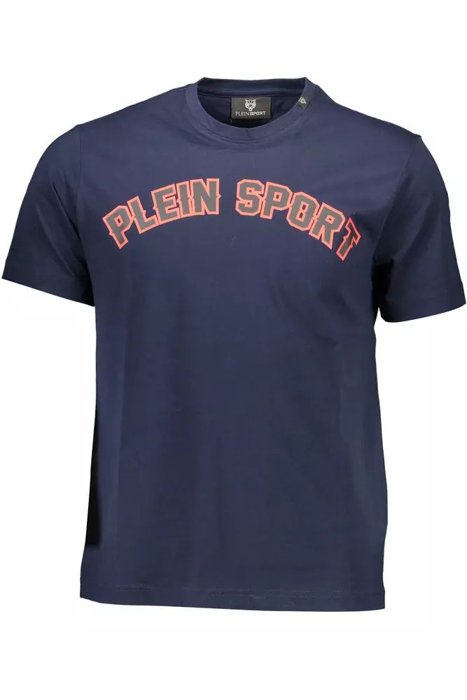 Plein Sport Sleek Blue Crew Neck Tee with Contrasting Prints$99.00 $229.00