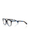 Wayfarer Model Eyeglasses With Central Template. Blue Havana Frame With Geometric Pattern. Colored Auctions.
