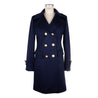 Loro Piana Fabric coat for women, blue color, front closure with golden buttons, padded with Loro Piana fabric. Made in Italy