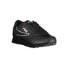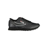 Elevate your athletic ensemble with these sleek black lace-up sport sneakers from Fila. Designed to combine style with functionality, they feature dynamic contrast details and the iconic Fila logo. Perfect for the active fashion enthusiast.