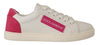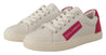 White Pink Leather Low Top Sneakers Womens Shoes